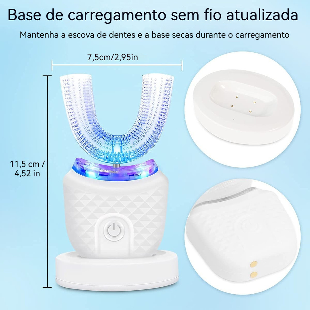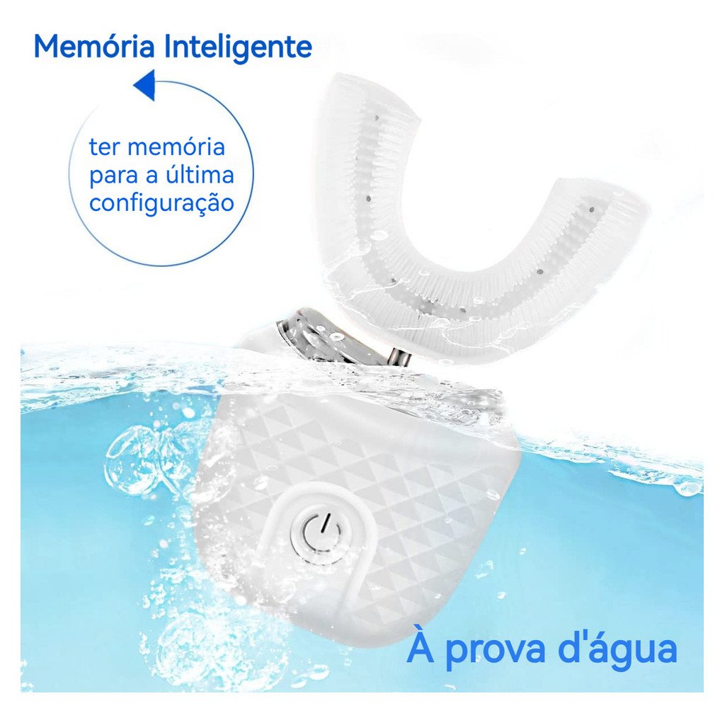 A Escova Dental Ultrassônica U-Shape envolve todos os dentes de uma vez, entregando uma higienização completa, rápida e eficiente — perfeita para quem busca praticidade sem abrir mão de saúde bucal.