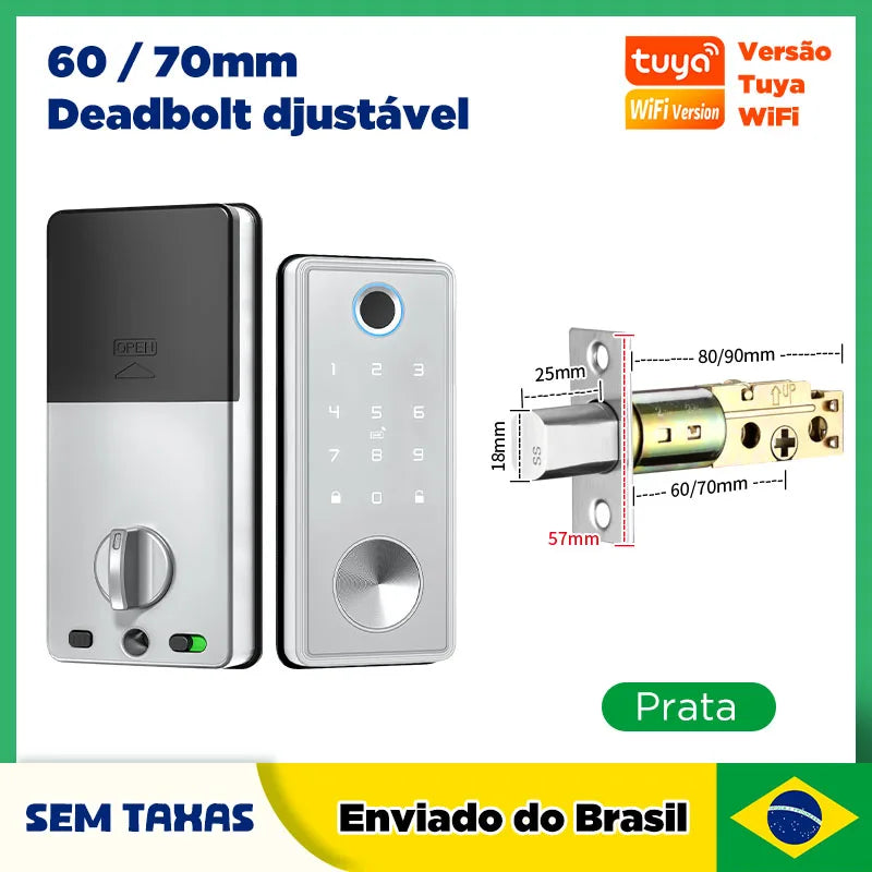 Use impressão digital, aplicativo Tuya, senha numérica, chaveiro eletrônico ou chave tradicional. Chega de ficar preso do lado de fora ou perder tempo com chaves. -